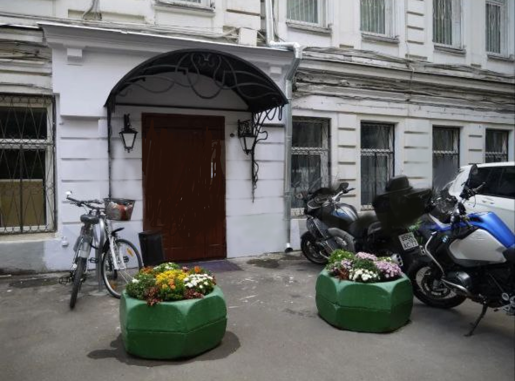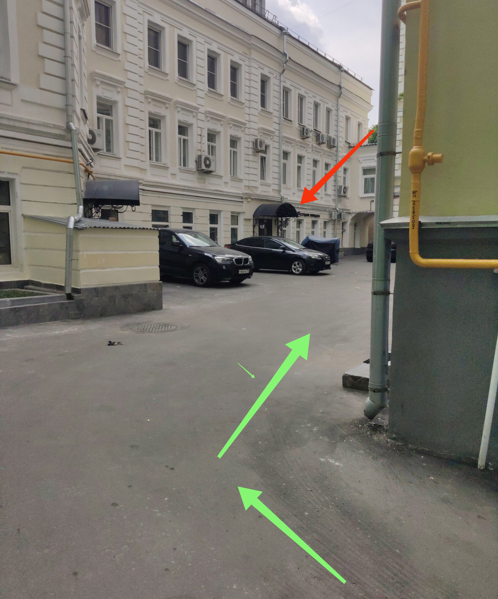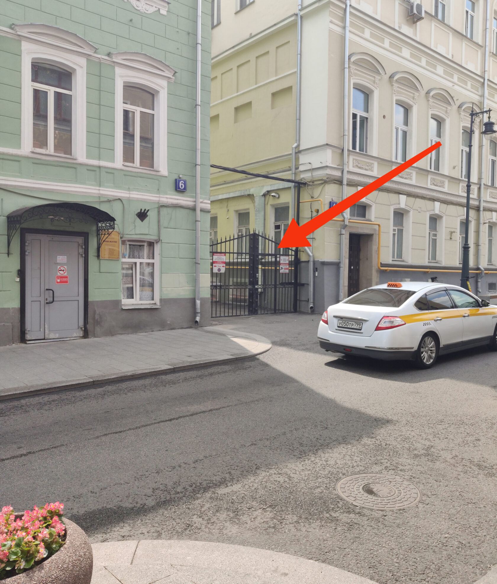По улице Большая Дмитровка пройти три квартала до Дмитровского переулка и направо.
